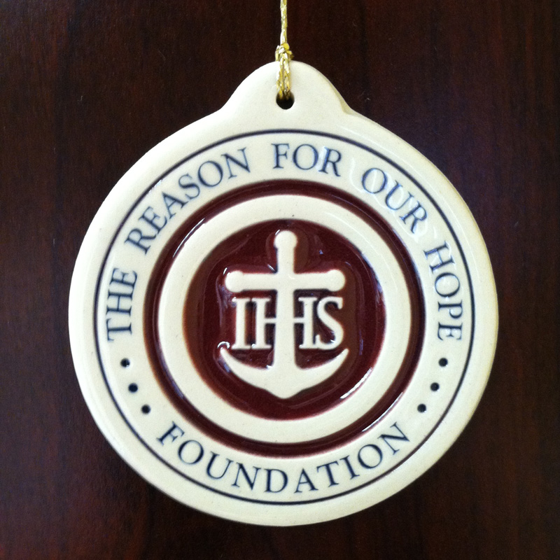 This handcrafted stoneware Christmas ornament was made in the U.S.A. by Deneen Pottery of St. Paul Minnesota. The Reason For Our Hope logo is glaze engraved in this ornament and sure to bring your Christmas tree to life with this reminder of the true reason for our hope in the birth of our Savior.